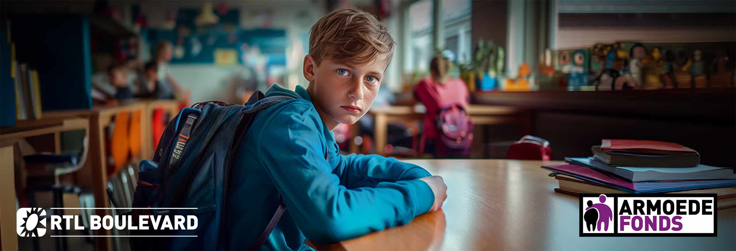 De afgelopen jaren ziet het Armoedefonds het aantal aanvragen voor schoolspullen enorm toenemen. Door die toename kunnen we niet alle kinderen helpen. Daarom vroegen we, samen met Alex van Keulen (bekend als tv-makelaar en ambassadeur van de Schoolspullenactie), in de week van 26 t/m 30 augustus 2024 bij RTL Boulevard aandacht voor de Schoolspullenactie. Hiermee helpt het Armoedefonds kinderen die opgroeien in armoede aan schoolspullen. Samen met de kijkers van RTL Boulevard vulden we zoveel mogelijk rugzakken ter waarde van 50 euro. En je kunt nog steeds bijdragen om kinderen in armoede aan een goed gevulde rugzak te helpen!